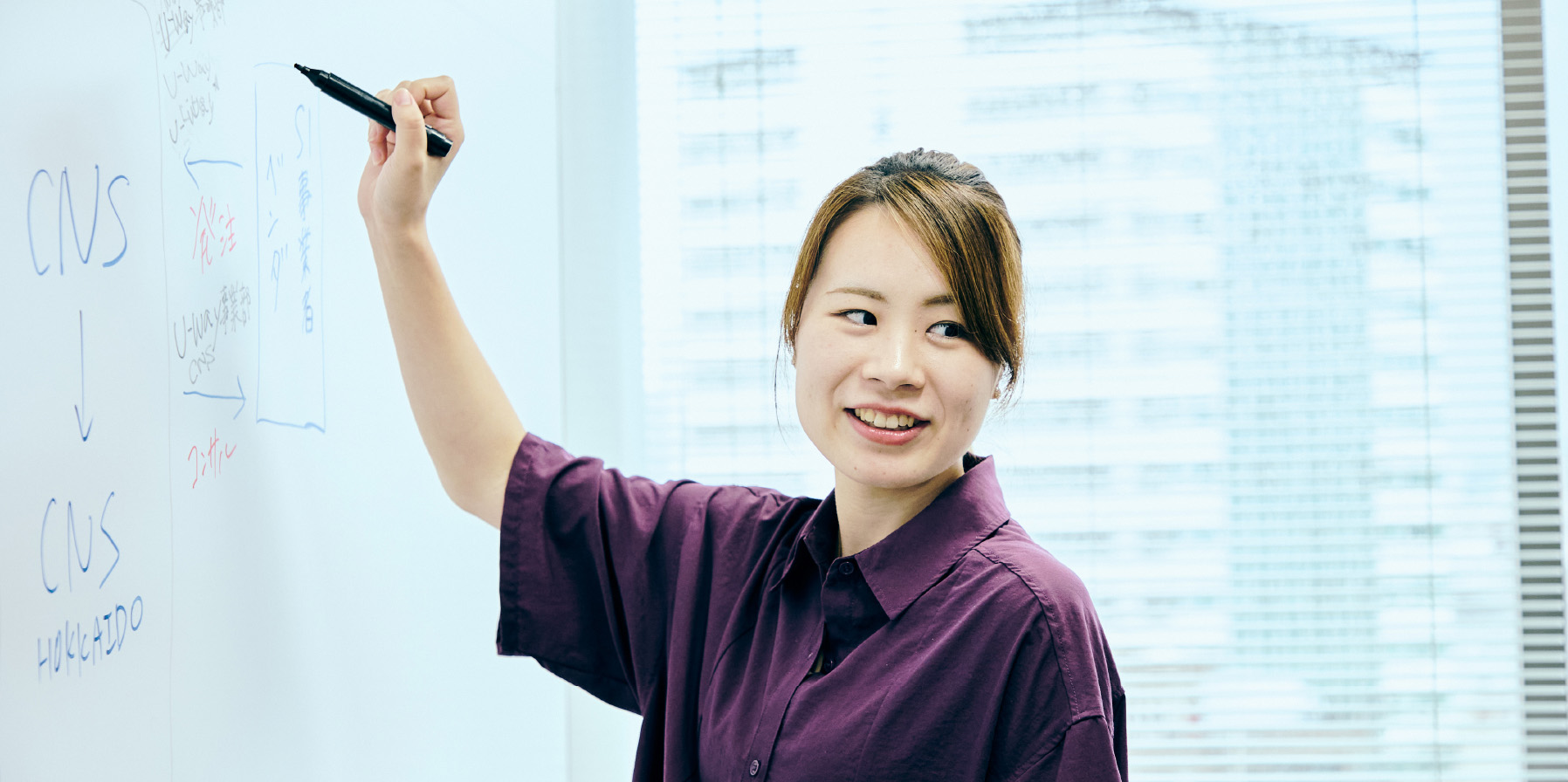 私は就職活動中、自分のやりたいことが分からず大変悩みました。そんな中で「一緒に働きたいと思える人がいるか」を基準に判断したことは、間違っていなかったと思っています。職場は家族より長い時間を共にし、同じ目標に向かって頑張る仲間ですからね。もし、私と同じように悩んでいる方がいらっしゃれば、ぜひ多くのシイエヌエス社員と会話をしてみてください。その中で魅力を感じていただけたら、若手でも「あれをやってみたい」「こういうのをやってみたい」といった意見を受け入れてもらえる、風通しのよい環境で一緒に成長していきましょう。